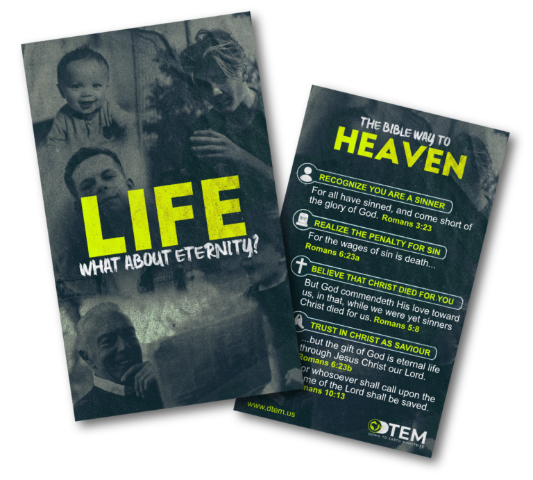 This thought-provoking gospel tract uses powerful imagery of the stages of life—from childhood to old age—to remind readers how quickly life passes. Centered around the question “What about eternity?”, it challenges the viewer to think beyond the present moment and consider their eternal destiny. Designed to open meaningful conversations, this tract points readers toward the hope and salvation found in Jesus Christ.