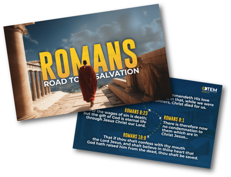 This gospel tract presents the message of salvation through a series of key passages from the book of Romans. Using the well-known “Romans Road,” it guides readers step by step through the Bible’s explanation of sin, grace, and redemption through Jesus Christ. With imagery inspired by the ancient Roman world and a clear biblical focus, this tract leads readers along the path of Scripture toward the hope of salvation.